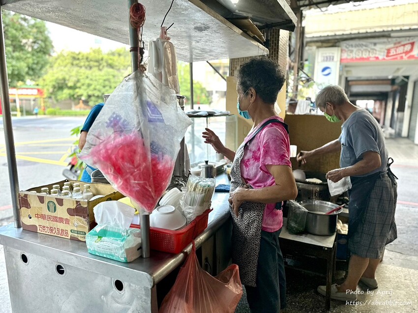 阿公負責煎蛋餅、蘿蔔糕,阿婆負責收碗盤、拿飲料等。