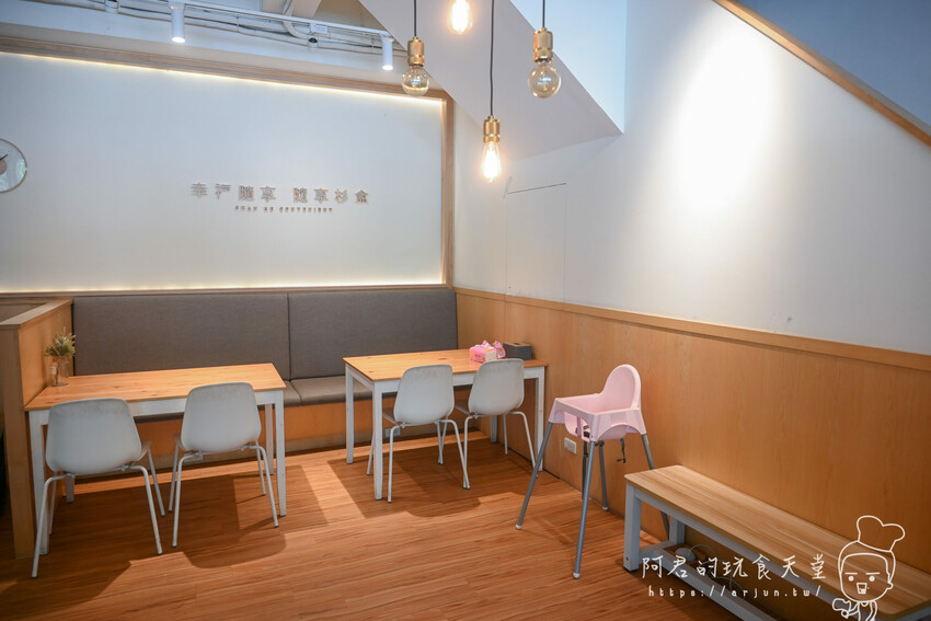 店內以淺色的木質桌椅為主,勾勒出溫馨的用餐輪廓,另外衫盒也提供了兒童座椅,相當貼心。