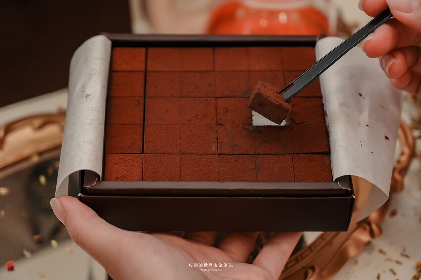 選用宜蘭在地冠軍紅茶與法國頂級巧克力製作的紅茶生巧克力入口即化,柔軟的口感有點像是冰淇淋,隨著生巧克力在口中化開,舌尖立刻竄出淡淡紅茶香,細緻濃郁又甘甜!