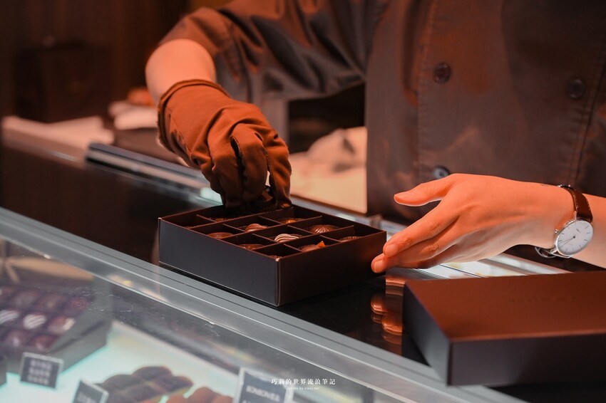 冷藏櫃裡頭琳瑯滿目是可可德歐的招牌 BONBON禮盒 巧克力口味多達有50多種,現場約有12-15種口味,每天來買可能都會有不一樣的驚喜!BONBON禮盒有6入、9入、12入,沒有單顆零售,直接就是一個情人節禮物,還有漂亮的蝴蝶結緞帶,浪漫的你知道該怎麼做了吧!買給自己也很快樂 🥰
