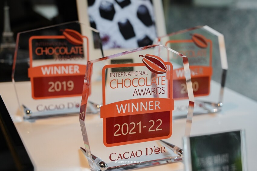 可可德歐店內有好幾張ICA世界巧克力大賽的獎牌與獎狀,世界級認證的巧克力,使用噶瑪蘭威士忌、宜蘭燒酎、金棗、玉女番茄、醬油、茶葉…等宜蘭在地食材作為巧克力內餡,將一顆顆巧克力加入宜蘭在地元素做出專屬的可可德歐口味,BONBON系列彷彿就是一顆顆蘭陽平原上的黑鑽石!