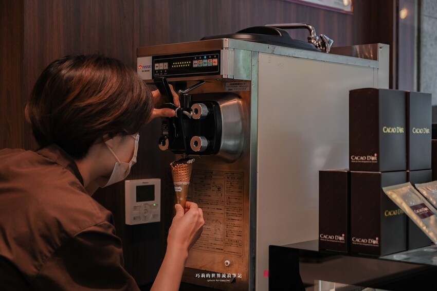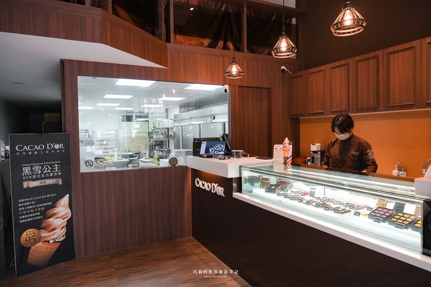 明亮的開放式廚房,在現場就能看見巧克力的製作過程,可可德歐追求的是味蕾的平衡,不追求五顏六色的花俏的外表,一顆一顆小心翼翼的根本就像是在選購精品一樣!還有礁溪必吃的85%超濃「黑雪公主霜淇淋」~