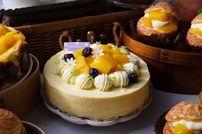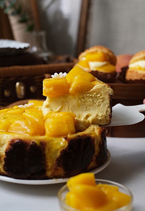 這款蛋糕的特色就是外圍帶著焦色,切開後有著濃郁的乳酪香氣,上層更是放入不少新鮮的愛文芒果來中和巴斯克重乳酪的膩感呢