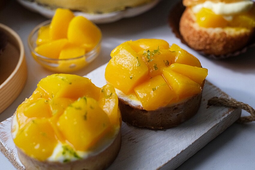 大口入嘴芒果多汁甜香的滋味加上馬卡斯卡邦的迷人香氣,酥脆的塔皮融入微微的百香果泥更是不甜膩,非常適合當下午茶甜點,配上一杯美式咖啡品嚐更是愜意!