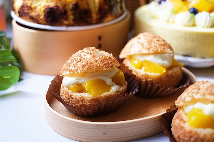 酥香的泡芙外皮搭上主廚自製的滑順芒果卡士達醬餡、芒果果肉是最適合夏天甜食的好夥伴。這一款芒果泡芙最讓人驚豔的是添加了馬卡斯卡邦,不只是讓內餡更為細緻、那香氣在口腔裡慢慢散發超幸福的啦!!