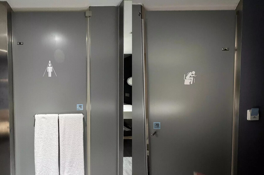 各自獨立的浴廁,在門板上都有可愛的圖案