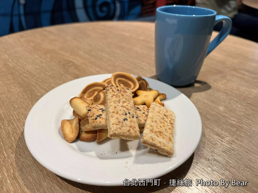 吃的則有四款懷舊的小餅乾,這些都是無限取用的喔