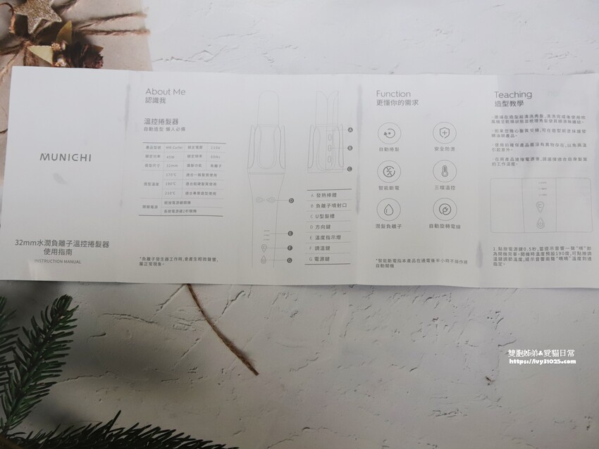 攤開說明書,可以看到詳細說明如何使用操作,讓初次使用MUNICHI 沐尼黑/水潤負離子溫控捲髮器MR.Curler