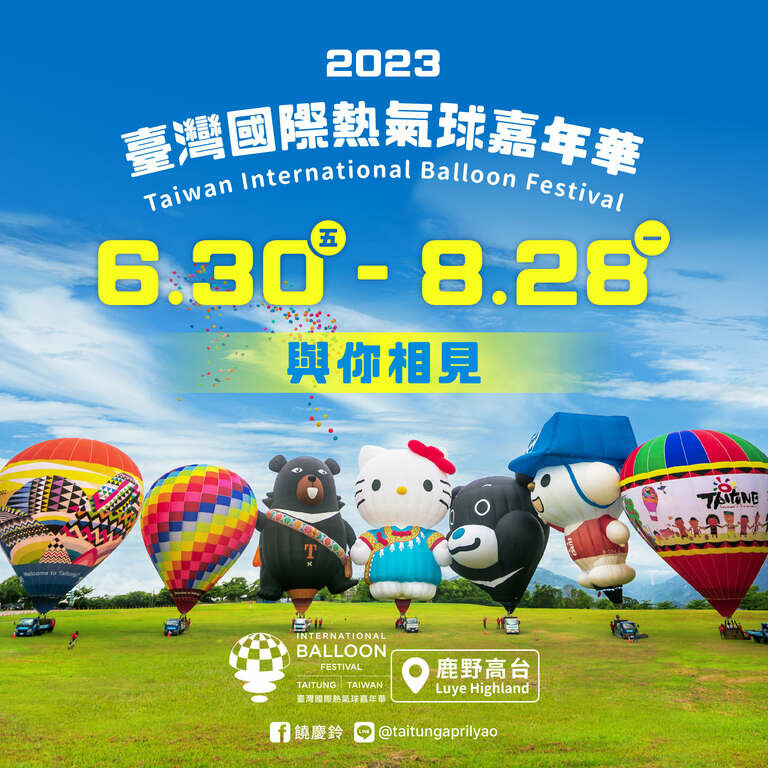 今年夏季最炙手可熱的活動,舉辦型態更勝以往,邀請世界各地超過50顆國內外熱氣球,包含首次登場【Q版媽祖熱氣球】及連續三年創造粉紅泡泡旋風的【布農族Hello Kitty球】,更邀請line貼圖人偶【好想兔、啾啾妹及晴天P莉】助陣,6/30起台東將吹起超級卡哇伊的可愛貼圖風,活動將以四種不同主題熱氣球宛如一場天空炫麗派對,絕對讓人直呼過癮。