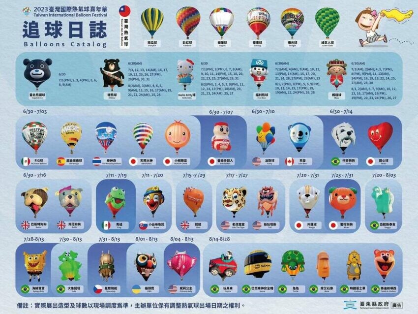 ※實際展出造型及球數以現場調度為準,主辦單位保有調整熱氣球出場日期之權利