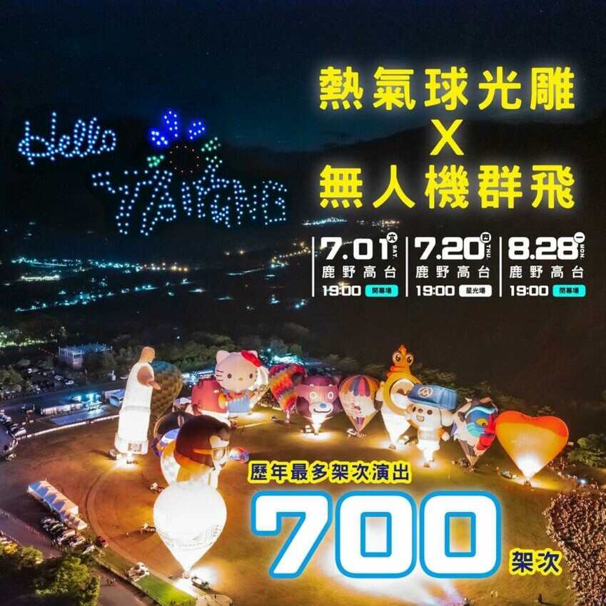 ▶熱氣球光雕會-無人機展演日 : 7/01開幕、7/20鹿野高台、8/28閉幕
