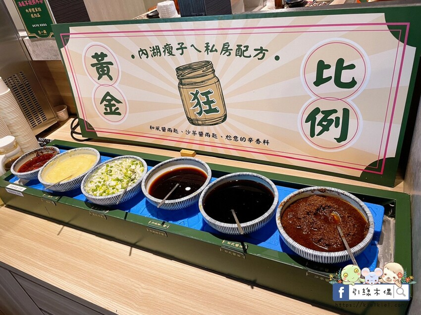 狂一鍋的湯底很夠味,我個人是覺得不需要再另外沾醬,但重口味朋友們是也可以參考狂一鍋提供的黃金比例:「內湖瘦子ㄟ私房配方」和風醬兩匙+沙茶醬兩匙+尬意的辛香料,也頗提味哦~