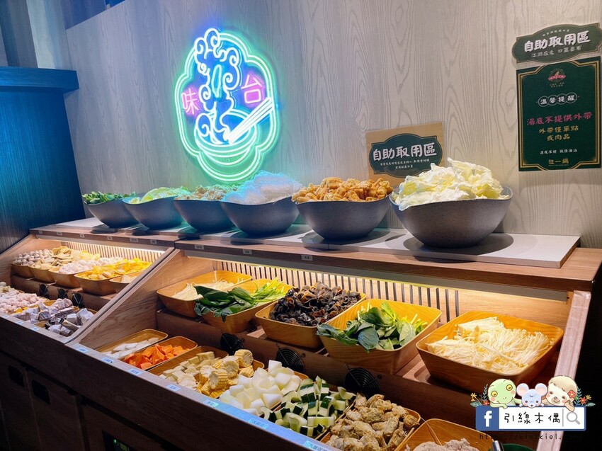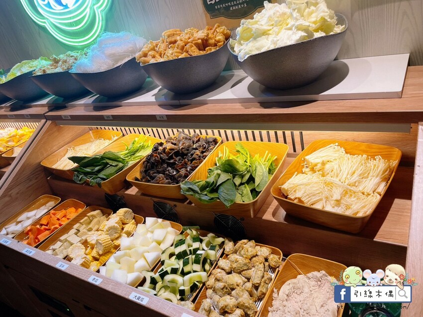 讓蔬菜控狂熱的蔬菜吧,不用再受限配好的菜盤一小盤,狂一鍋兩大櫃蔬菜及火鍋料將近40種,葉菜、根莖、菇類、餃類、丸類,選擇超豐富應有盡有,讓你開心吃盡情吃。