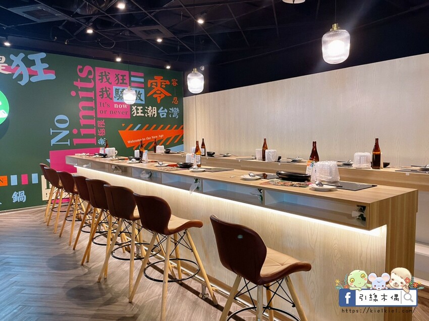狂一鍋的鍋底特色是現炒,服務人員可以站在中島位置進行桌邊服務,座位便多數是ㄇ型吧台。