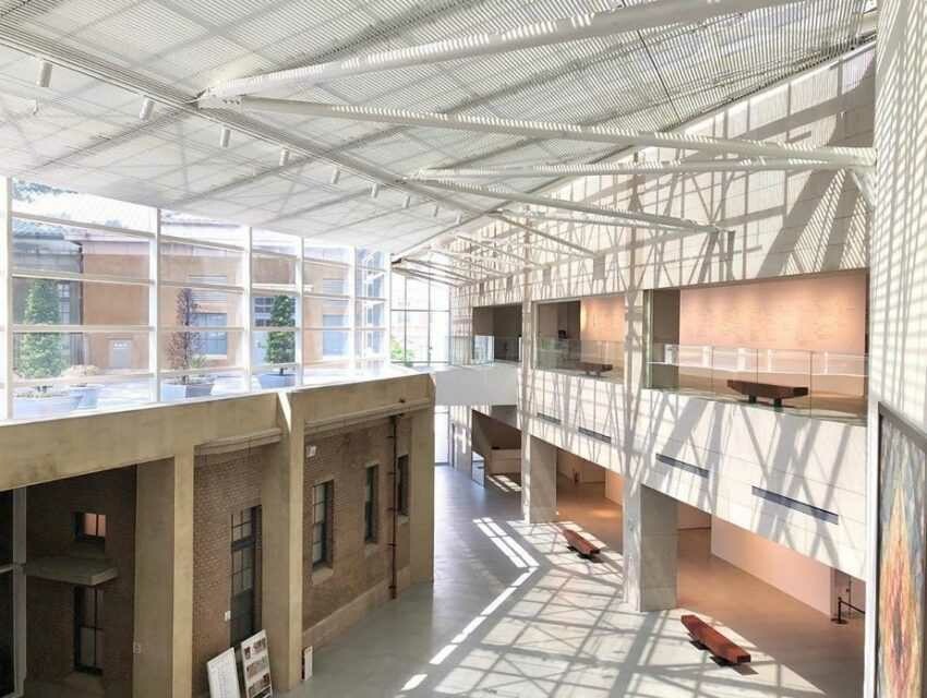 逛完充滿懷舊風情的南美館1館,接著當然就是要前往2019年新開幕的「臺南市美術館2館」。這個台南中西區景點南美館2館承襲1館,邀請了日本建築師合作設計,以台南特色的鳳凰花概念轉化成的五角形及幾何結構,以白色為基調的建築物配上室內採光照映出來像是樹蔭般的各種光影,馬上就成為了台南拍照打卡的熱點。