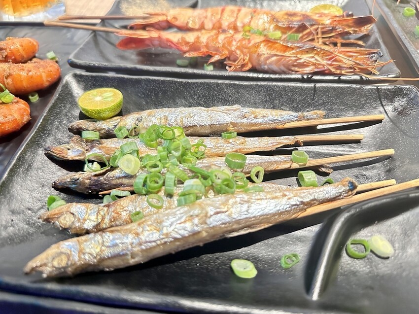 串在一起的泰國胡椒蝦特別將蝦頭處理過,食用上相當方便,加入了蔥段、薑絲、蒜末等配料,這些配料能夠提升整體風味,蝦肉的鮮嫩與胡椒的香辣相互融合,咀嚼時,可以感受到蝦肉的韌度和胡椒的辛辣,讓人忍不住一口接一口
