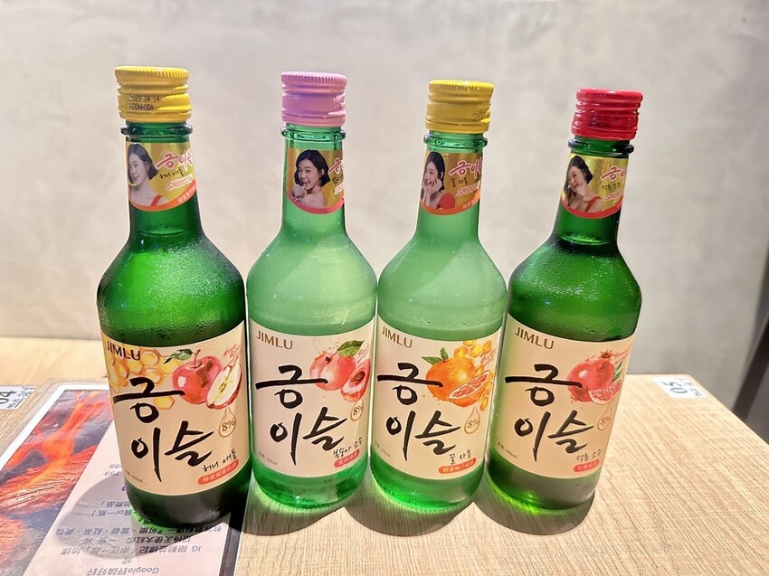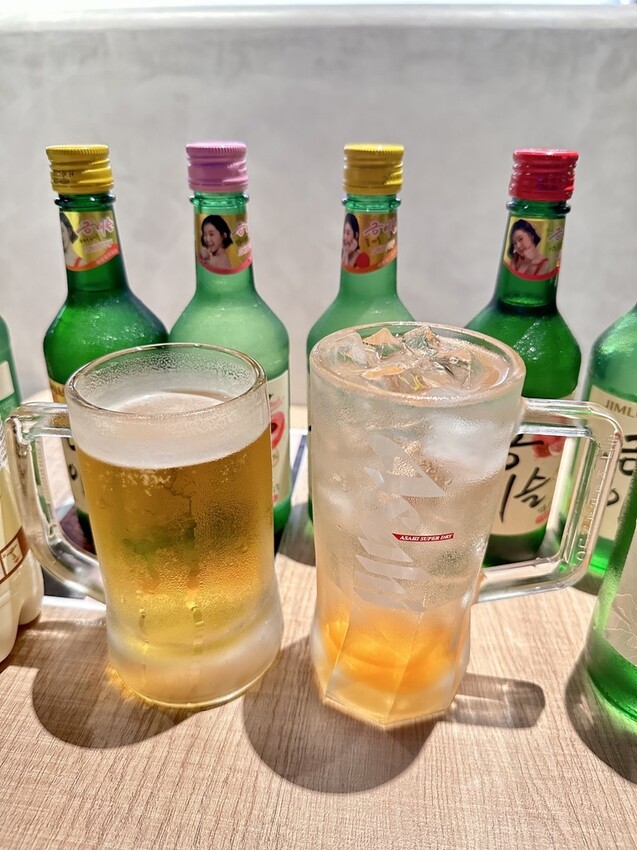 真的很多種口味,串在一起提供了暢銷的生啤酒、日本的清酒、微酒精的沙瓦還有韓國燒酒、小米酒各種酒類共合國,除了酒類以外也還有無酒精的氣泡飲料,汽水跟茶類