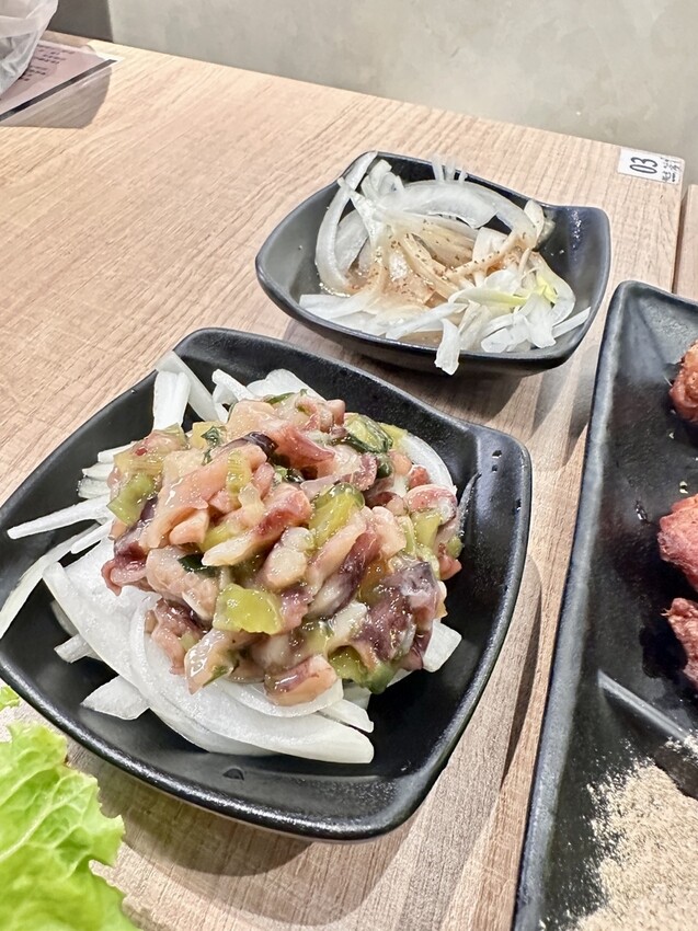 兩道都是清爽可口的開胃小菜,洋葱帶有其甜味跟微妙的辛辣味道,單吃開胃、搭配肉類一起則可以解油膩