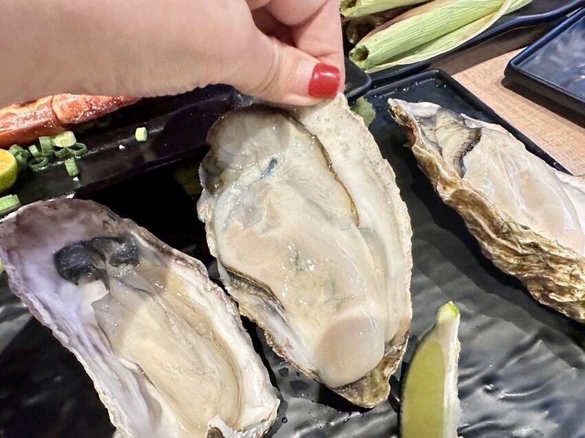 真的很大一顆,不是那種塞牙縫小小顆的生蠔,超感動的,而且非常新鮮,還有配上檸檬片跟哇沙米可以搭配食用增加不同風味,但這新鮮的程度,我什麼都沒配直接一口吃下,鮮嫩多汁,口中滿滿鮮甜的海洋風味,特別給最佳生蠔多張獨照