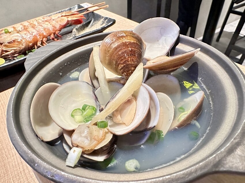 這道也是我去各家居酒屋的必點項目之一,因為我很愛喝湯,但是喝一整鍋又會太過,所以酒蒸蛤蜊燒的湯汁可取代湯料理,使用新鮮的蛤蜊作為主要材料,蒸煮過程中加入適量的酒,讓蛤蜊吸收了酒的香氣,湯汁中散發出令人垂涎的酒香