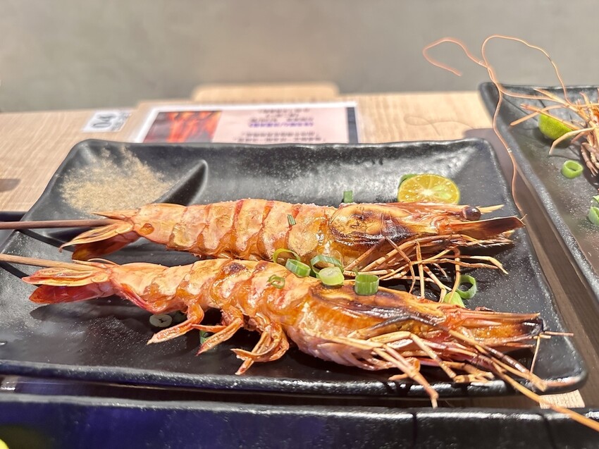 金黃色的蝦殼,烤燒過程中表面呈現微焦的炭燒痕跡,給人一種誘人的視覺享受,若是懶的剝蝦殼,酥脆的外殼也可以直接咀嚼,蝦肉質Q彈質地結實,吃起來非常滿足