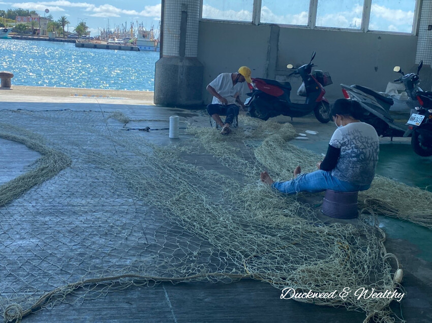 「將軍漁港」漁民漁船靠岸後他們生活日常就是修補破網,