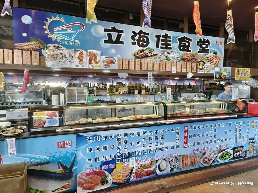 「將軍漁港」一樓是美食攤位販售各式海鮮料理,二樓則是餐廳,小吃料理或者圓型辦桌菜通通有,