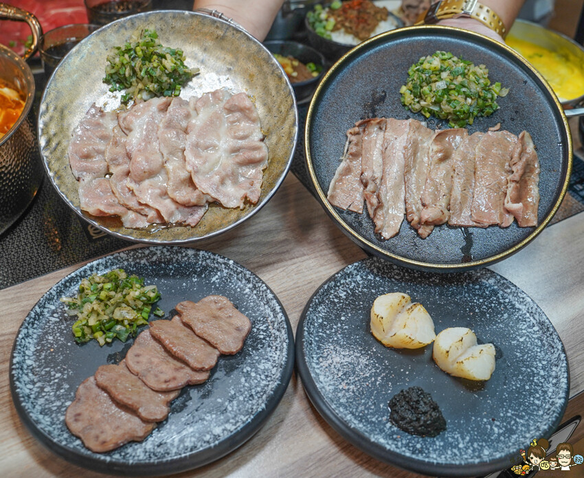 炙燒北海道大干貝、炙燒西班牙依比例豬燒肉炙燒厚切牛舌、炙燒美國牛小排燒肉