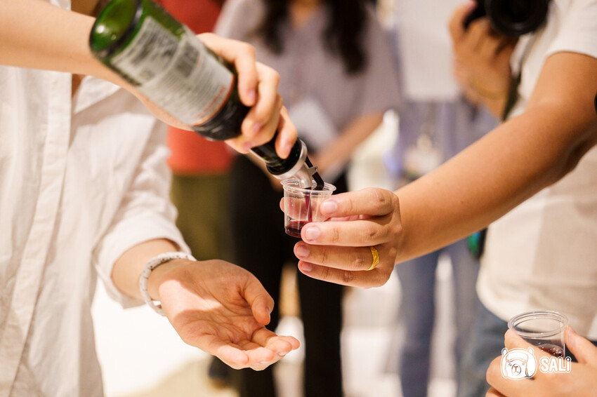 現場提供多款酒品試飲,建議都來喝看看,好好感受哪款風味是自身喜歡,像這支白葡萄酒,有著獨特的蜜蘋果香氣,微微甜味營造清爽口感,紅葡萄酒,穩定的酸度和濃郁花果香,加上不需醒酒,就相當順喉