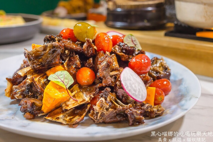 整道料理帶有梅子清香還有梅子醬的濃甜,邊吃邊再夾一顆剝了皮的醃漬小番茄,讓裹上甜濃梅子醬汁的鴨架子肉,多了清爽果香還解了甜膩!