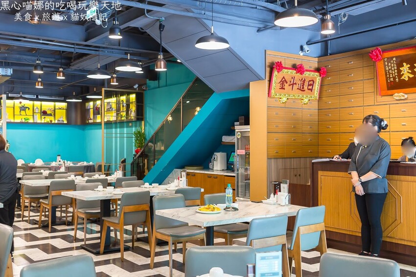 位於民族大樂斜對角的鴨點棧烤鴨港點專賣,高質感湖水藍店面、大黃色招牌、鑲金邊窗戶再加上薄紗窗簾,給人一種精緻高級港式料理餐廳之感,它確實也是!😆