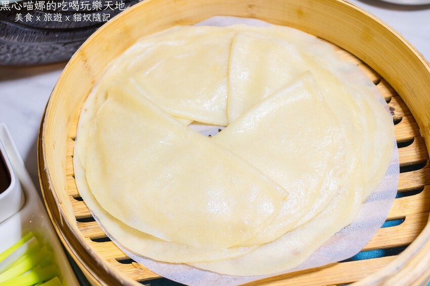 荷葉餅皮溫熱彈軟,加入了鴨油,所以在咀嚼時除了本身麵香,還會散出鴨油香氣,非常特別!