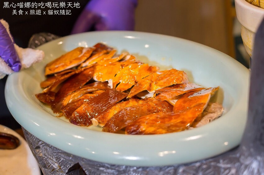 以精湛刀工迅速片下的鴨皮,放置到一旁鴨子容器上,底下有微火保溫,讓客人即便聊天聊到忘我,吃的時候都還保持著溫熱,不會隨著冷氣吹拂變涼而失去烤鴨最美好的口感與滋味!
