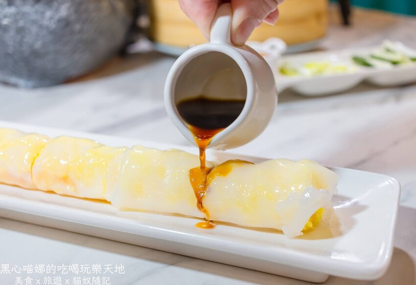 白透晶瑩的腸粉皮,緊貼著黃色米網皮,中間包進藏有大塊蝦肉的蝦滑,腸粉Q嫩、米網皮脆口、蝦肉鮮、蝦滑甜,整體口感十分有層次,比傳統腸粉還要好吃,讓我們讚不絕口!!