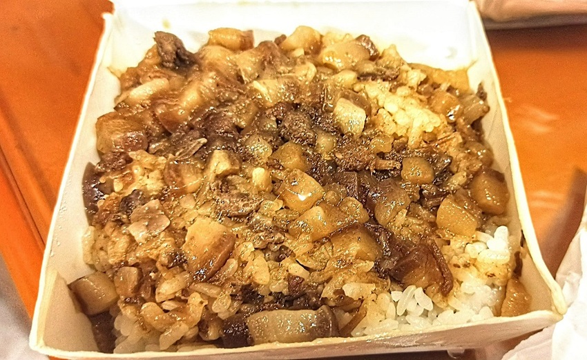 肉燥是帶皮肥肉下去滷的 帶點軟黏的口感