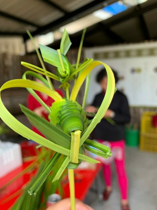 草蚱蜢是以前常見的童玩之一,利用葉子、竹子或是檳榔葉等天然材料編織成蚱蜢,樹葉的綠色完美比擬蚱蜢的樣貌,加上天然的漸層讓草蚱蜢更生動。只要參加遊程就會拿到一隻由在地社區長輩親手製作的草蚱蜢,過去往觀音瀑布的路上就有很多人在販售草蚱蜢,現在讓在地民眾參與製作,讓在地民眾與遊客共同串起觀音瀑布的歡樂回憶。