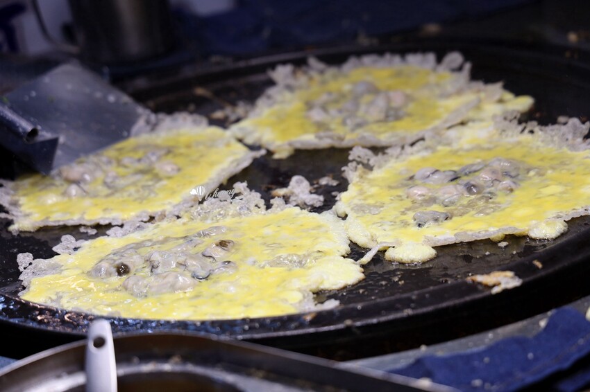 蚵仔煎必加的蛋液一加上去後,黃澄澄的模樣更加地誘人!