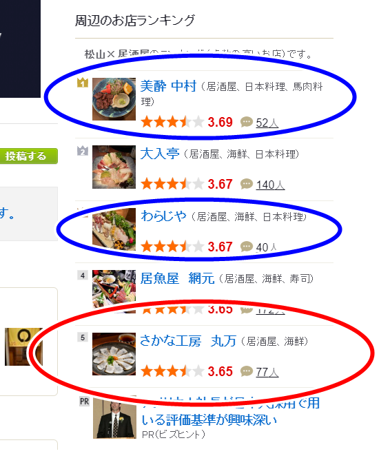 好奇查了一下,其實愛媛入選百大居酒屋的兩家「美酔 中村」(3.69)、「わらじや」(3.67),也只差0.02分...「さかな工房丸万」排在愛媛的第五位。
