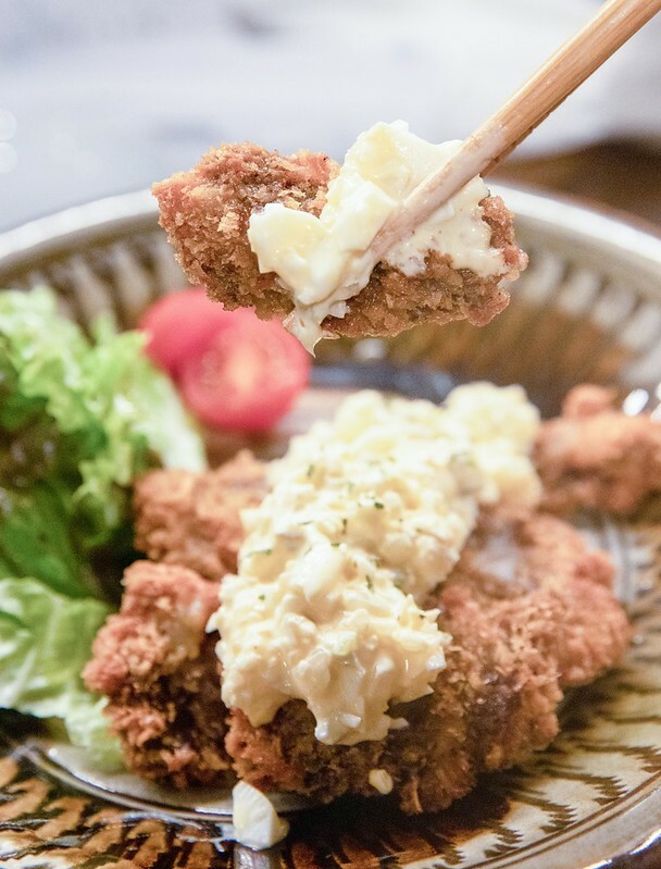 鯨のたルたル南蠻,たルたル就是塔塔醬的意思,南蠻(一種以美奶醬作成的醬汁,很常出現在炸物)。當然會點這道的主因絕對是「炸鯨魚」肉,記得之前在下關吃到鯨魚肉生魚片時,一整個震驚(原來這麼好吃),但好像從沒吃過炸鯨魚肉排,問了店家說是下巴的肉。吃起來外層的麵衣其實有一點乾,但幸好有たルたル南蠻醬之助,算是好入口,但也多出了炸物少見的微脆口感,至於鯨魚肉老實說沒太多感覺,滿嘴都是たルたル南蠻和麵衣炸過的香氣,單獨吃一片也和印象中鯨魚肉不太像,倒像是有一點偏硬的鮪魚赤身。