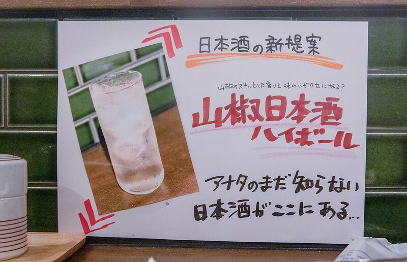 通常我第一杯都會先點生啤酒,看坐下時看到「山椒清酒ハイボール」menu,因為沒喝過便代替了生啤。