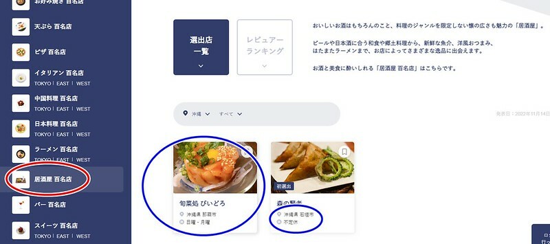 點進「百大餐廳居酒屋」的分頁後,你會發現沖繩只有兩家入選(2024版,2023還有三家...),分別是今天要分享在沖繩本島的「旬菜処びいどろ」,和在石垣島的「森の賢者」。然後,我順勢找了在日本我最愛的居酒屋「さかな工房丸万」(愛媛)居然沒有(泣)。