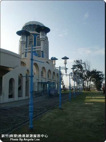 南寮漁港的旅遊服務中心,新建於95.7月完工,是新竹市十七公里海岸風景區的新景點,總樓地板面積有一千一百七十四平方公尺,旅遊服務中心外觀造型採用藍白兩色,圓形的屋頂與圓柱狀的觀景台樓層外觀,五層樓高的艦橋頂端保留觀景空間,觀景台部分高廿九公尺,配有景觀升降梯,採光、夜間照明、欄杆扶手等人性化服務。登上觀景台眺望四周,三百六十度美麗的海景、夜景景緻盡收眼底。(資料來源:新竹市17公里海岸線主題網)