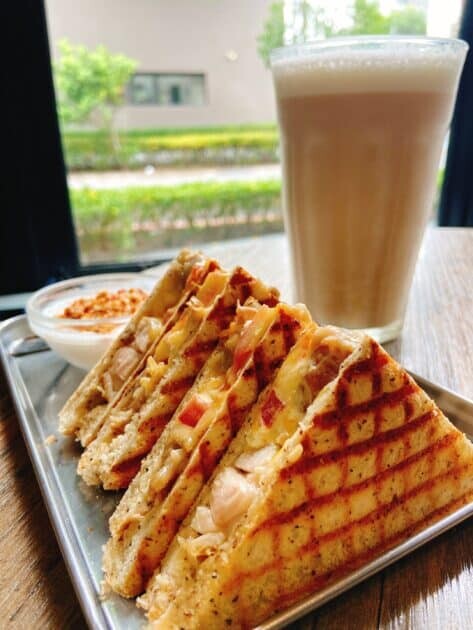 路易莎 咖啡 – 墨西哥辣椒米漢堡 + 英式紅茶 (微糖)蔬食也有得吃的平價咖啡店
