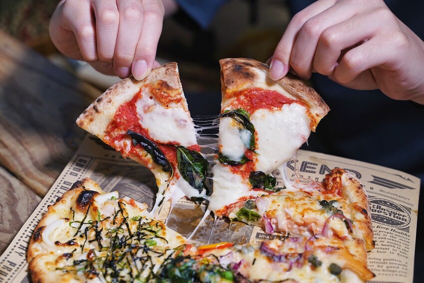 首波里店內招牌肯定是這道「首波里MIX披薩」,將店裡最熱銷的4種口味拼湊成一個薄皮pizza,口味有瑪格麗特、明太子海鮮、壽喜燒牛肉、酸豆鮭魚,每一種口味都是料多實在且好吃,真心推薦必點!