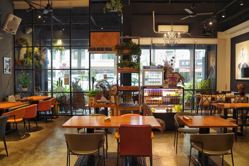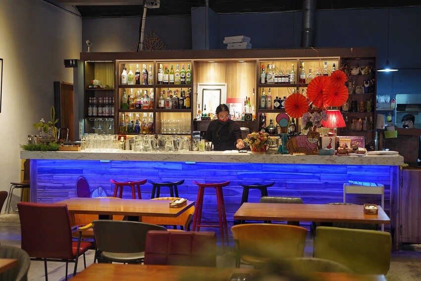 「首波里和風洋食餐酒館」門口種滿了綠色植物,搭配黑白棋盤地板、特色吊燈及大片落地窗,彷彿就來到國外的餐廳。印入眼簾的挑高的空間感,以及牆壁上的用心裝飾物,完全能感受到老闆的用心。