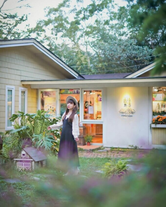 在小木屋外的園區指標處,擺設了幾張木椅與花園植栽造景,對於鄉村風愛不釋手的你們,一定要坐下來拍張照片再離開呀!