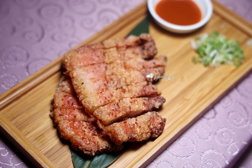 台式紅糟肉有淡淡紅麴酒香,咬來外酥內嫰,還有油脂香甘甜入味。
