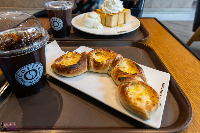 第五天的早餐我們選擇在離飯店步行兩分鐘的Tom n Toms Coffee吃早餐,這家在網路評價很高,像是我點的這個玉米麵包視線點現做喔!整個口味還蠻不錯的。