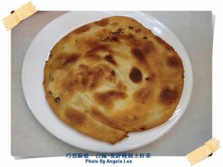 (但要在剛起鍋的蔥油餅將它捏成碎片狀,真的是燙死人ㄚ~"~)