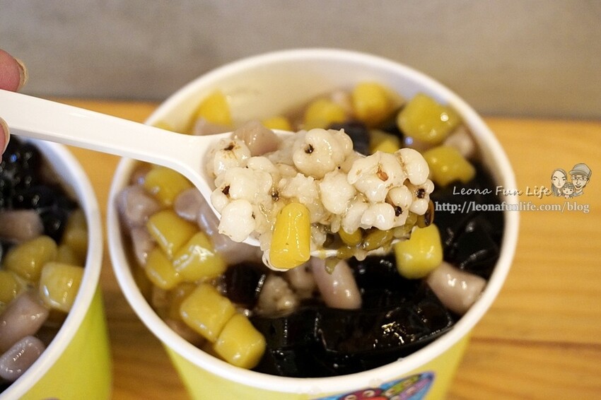 右邊是綠豆+薏仁+仙草+手工芋圓,
